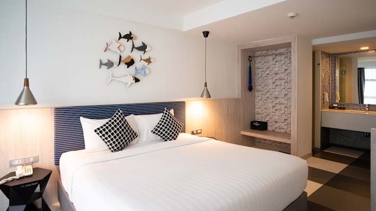 Das Krabi SeaBass Hotel bietet klimatisierte Zimmer mit einer Terrasse oder einem Balkon, von denen einige einen schönen Blick auf den Pool oder die Stadt bieten. Die Zimmer verfügen über ein eigenes Bad, einen Flachbild-TV, einen Schreibtisch und einen Kühlschrank. WLAN ist in allen Zimmern verfügbar.