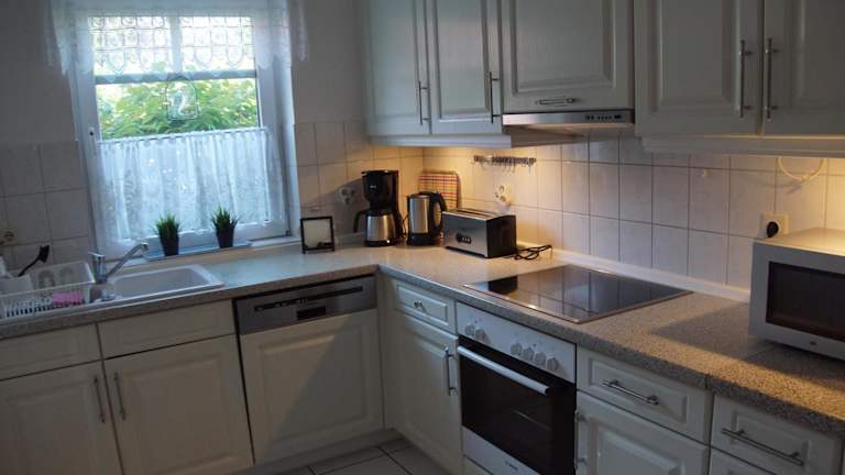 Das Ferienhaus verfügt über 2 Schlafzimmer und einen TV. Die voll ausgestattete Küche bietet Annehmlichkeiten wie einen Kühlschrank, einen Geschirrspüler, eine Waschmaschine, einen Ofen und eine Mikrowelle.