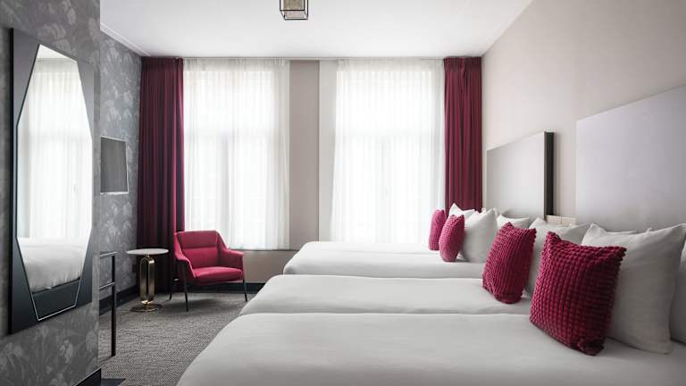 Das Hotel befindet sich im Stadtzentrum von Amsterdam, nur 50 m von verschiedenen Restaurants, Bars und dem Busbahnhof entfernt. In der Nähe befinden sich auch die Nachtclubs am Leidseplein, das Anne-Frank-Haus (ca. 500 m) sowie das Van-Gogh-Museum und das Rijksmuseum (beide ca. 1 km). Der Bahnhof ist etwa 2 km entfernt und der Flughafen Amsterdam Schiphol liegt in rund 15 km Entfernung.