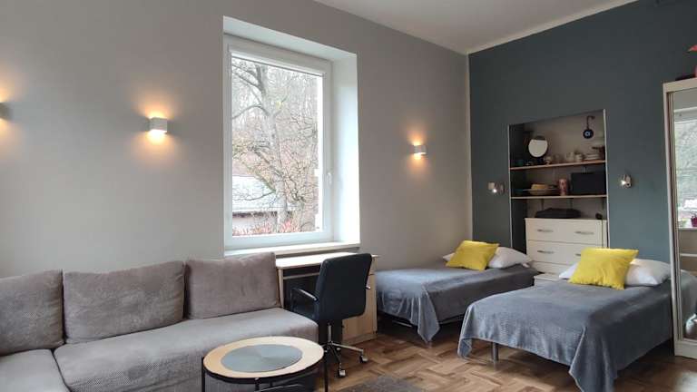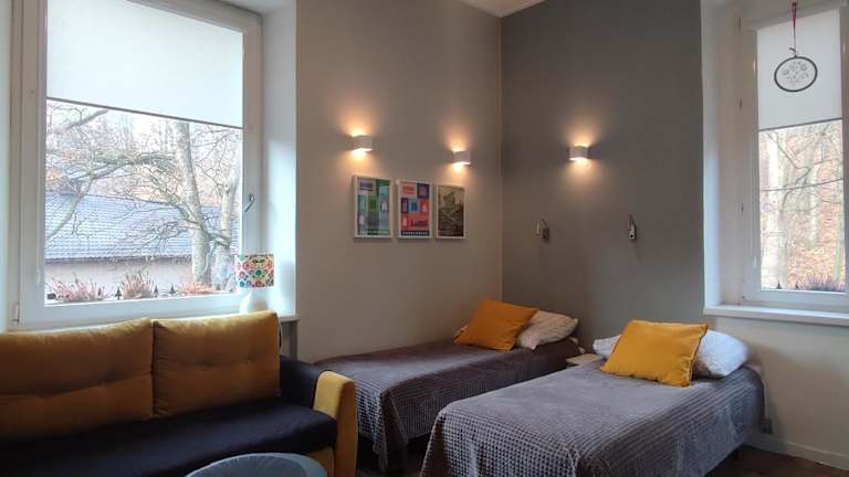 Die Unterkunft Krokus befindet sich in Sokołowsko, in der Nähe von Sehenswürdigkeiten wie Schloss Fürstenstein, das 24 km entfernt ist, sowie der Stadtpfarrkirche St. Stanislaus und Wenzel, die 33 km entfernt liegen. Weitere Punkte wie der Bahnhof Kudowa-Zdrój sind 44 km und die Errant-Felsen 47 km entfernt. Der nächstgelegene Flughafen, der Flughafen Nikolaus-Kopernikus Breslau, liegt 88 km von der Unterkunft entfernt.