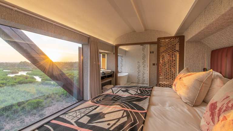 Das Hotel Kruger Shalati - Train on The Bridge & Garden Suites bietet ein außergewöhnliches Urlaubserlebnis in einem ehemaligen Zug auf der historischen Selati-Brücke. Die Unterkunft zeichnet sich durch elegante Waggon-Suiten mit Blick auf den majestätischen Sabie River aus und kombiniert luxuriösen Komfort mit dem Safari-Charme der 1920er Jahre. Zu den Annehmlichkeiten zählen zwei Außenpools, Hängematten und Liegestühle für Entspannung. Das Hotel ist ein Nichtraucherhotel und ist für Gäste ab 12 Jahren geeignet. Es wird ein 24-Stunden-Rezeptionservice angeboten, und das Hotel ist nicht für Haustiere zugänglich.