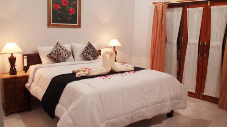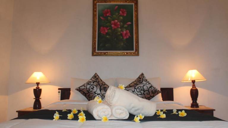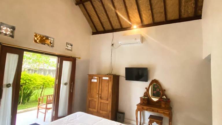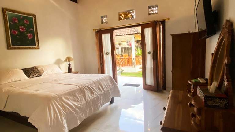 Die klimatisierten Zimmer im Kubu Indah Guest House bieten einen Balkon mit Blick auf den Garten. Entspannen Sie sich und genießen Sie Ihren Aufenthalt in den komfortablen Zimmern, die mit einem Flachbild-TV und einem eigenen Badezimmer ausgestattet sind. Kostenfreie Pflegeprodukte stehen Ihnen zur Verfügung und Handtücher und Bettwäsche können gegen Aufpreis bereitgestellt werden.