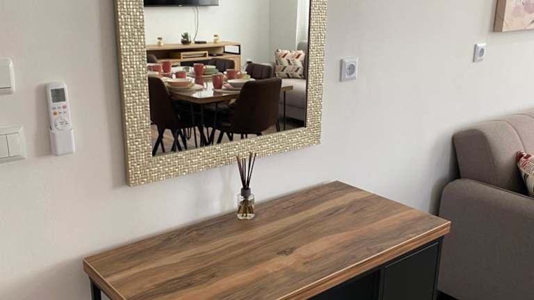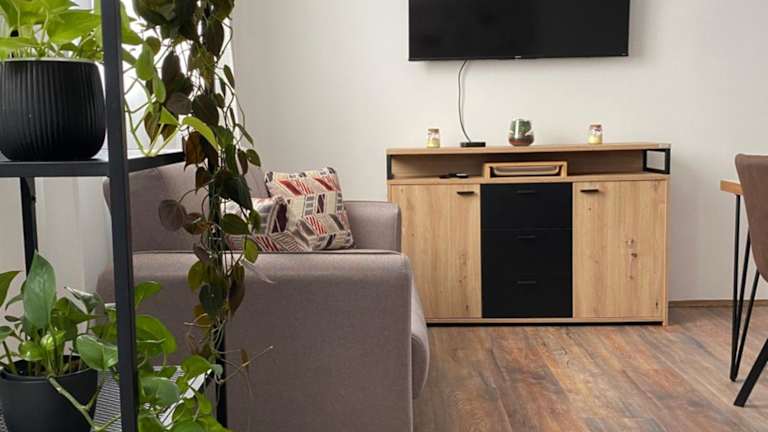 Die Ferienwohnung umfasst zwei Schlafzimmer, ein Wohnzimmer und eine voll ausgestattete Küche, die mit einem Kühlschrank und einem Wasserkocher ausgestattet ist. Es gibt ein Badezimmer mit Dusche und kostenlosen Pflegeprodukten. Handtücher und Bettwäsche werden ebenfalls bereitgestellt.