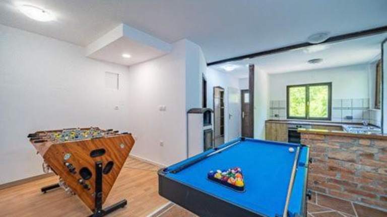 Das Kuća za odmor Šum slapa in Karlovac ist eine ideale Unterkunft für einen entspannten Strandurlaub. Mit Wassersportmöglichkeiten, einem eigenen Strandbereich und einer Vielzahl von Annehmlichkeiten wie einem Billardtisch und kostenfreiem WLAN bietet dieses Ferienhaus den perfekten Rückzugsort. Die klimatisierte Unterkunft verfügt über 2 Schlafzimmer, eine gut ausgestattete Küche und ein gemütliches Wohnzimmer. Der Whirlpool und der Kinderspielplatz sorgen für zusätzlichen Komfort und Spaß. Genießen Sie den Garten mit Grillmöglichkeiten und erkunden Sie die Umgebung beim Angeln und Radfahren.