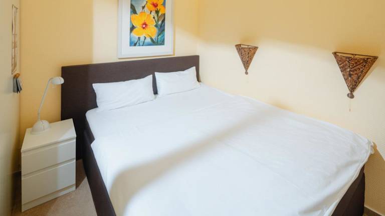 Die Ferienwohnung umfasst 1 Schlafzimmer und ein Wohnzimmer, sowie eine gut ausgestattete Küche mit Kühlschrank und Geschirrspüler. Zur Einrichtung gehören ein TV und ein Badezimmer mit Dusche. Handtücher und Bettwäsche werden bereitgestellt.