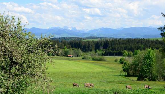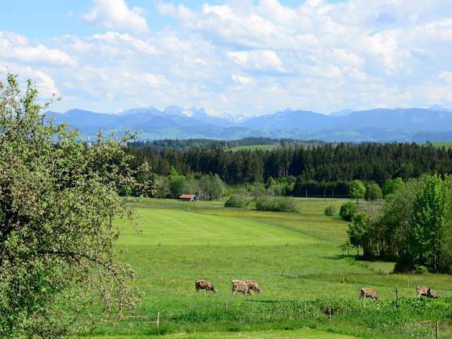 Die Unterkunft Kuh Heimat - Bergblick - Terrasse befindet sich in Buchenberg, Bayern. In der Nähe sind verschiedene Sehenswürdigkeiten, darunter das Museum der Stadt Füssen und das Kloster St. Mang, beide in etwa 50 km Entfernung. Die nächste größere Stadt, die für zahlreiche Freizeitmöglichkeiten bekannt ist, ist Füssen. Zudem liegt der Flughafen Memmingen ca. 50 km entfernt.
