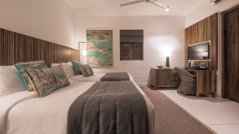 Das Kumu Beach Hotel verfügt über acht Zimmer, die alle einen atemberaubenden Meerblick bieten. Einige Zimmer haben auch einen eigenen Balkon oder eine Gartenterrasse. Die Zimmer sind mit Klimaanlage, Safe, Minibar, Tee- / Kaffeekocher, Sat-TV und WLAN ausgestattet. Die Badezimmer verfügen über eine Dusche, einen Haartrockner und Bademäntel. Rollstuhlgerechte Zimmer sind ebenfalls verfügbar.