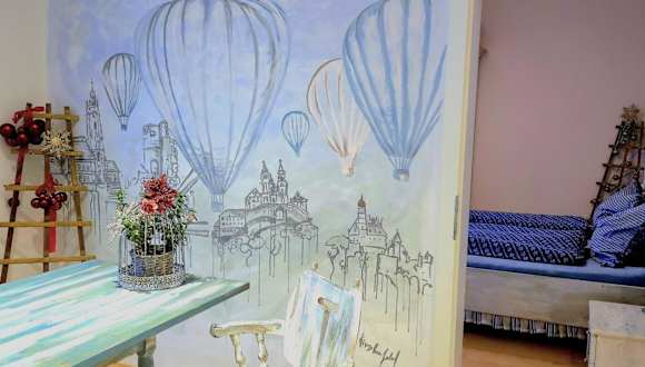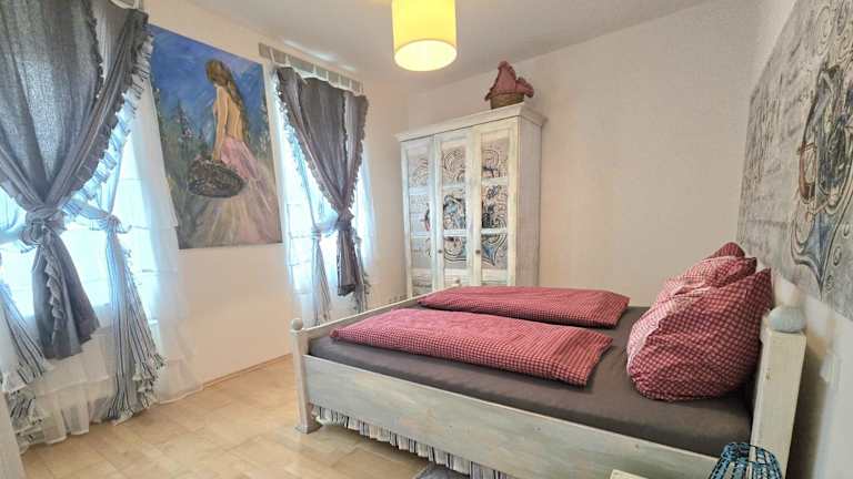 Das Kunst Apartment im Schwalbenhaus bietet ein gemütliches Schlafzimmer, in dem Sie sich nach einem ereignisreichen Tag entspannen können. Das geräumige Wohnzimmer lädt zum Verweilen ein und die voll ausgestattete Küche ermöglicht es Ihnen, Ihre eigenen Mahlzeiten zuzubereiten. Das Apartment bietet Handtücher und Bettwäsche, sodass Sie sich um nichts kümmern müssen und Ihren Aufenthalt in vollen Zügen genießen können.