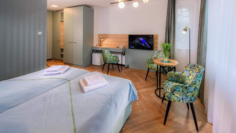 Das Sanatorium Uzdrowiskowe Marta bietet eine Vielzahl von Gesundheitsanwendungen und Wellnesseinrichtungen, die nach Reservierung und gegen Aufpreis verfügbar sind. Genießen Sie Massagen mit Steinen oder Kräutern, entspannen Sie in der Infrarotsauna oder nehmen Sie ein therapeutisches Bad. Das Hotel bietet auch Kajakfahrten an, damit Sie die schöne Umgebung erkunden können.