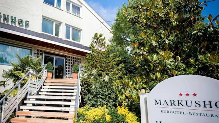 Das Kurhotel Markushof befindet sich in Bad Bellingen und ist nur 5 Gehminuten vom Bahnhof entfernt. Die Lage des Hotels ermöglicht es Ihnen, den Schwarzwald, die Schweiz und das Elsass bequem zu erkunden. Der Schwarzwald mit seinen zahlreichen Wander- und Radwegen ist nur 8 km entfernt. Eine Autobahnausfahrt der A5 liegt ebenfalls in der Nähe und bietet eine gute Anbindung an die umliegenden Regionen.