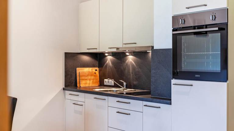 Die Ferienwohnung ist mit zwei Schlafzimmern und einem Badezimmer ausgestattet. Zur Ausstattung gehören Bettwäsche, Handtücher, ein TV mit Satellitenkanälen sowie eine voll ausgestattete Küche. Ein Balkon mit Bergblick ist ebenfalls vorhanden.