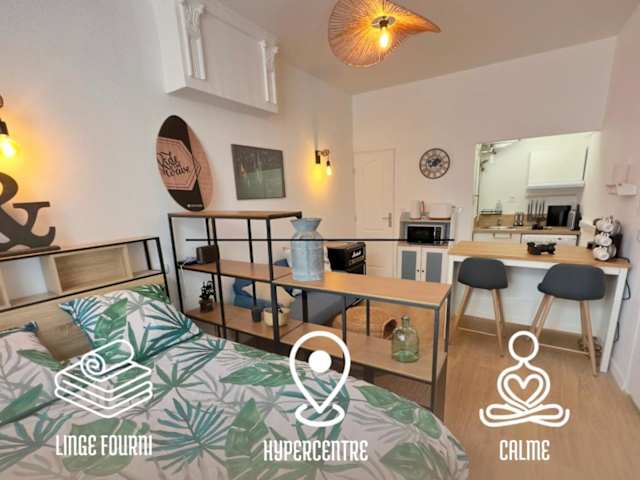 L’Albizia- Centre -TV WIFI-Cozy bietet Übernachtungsmöglichkeiten in Form einer Ferienwohnung. Sie ist ein Nichtraucherbetrieb, der von einem privaten Gastgeber geführt wird. Zu den Nutzungsbedingungen gehören spezifische Altersanforderungen für den Check-in und den Aufenthalt der Gäste. Es ist zu beachten, dass keine feierlichen Anlässe wie Junggesellen- oder Junggesellinnenabschiede gestattet sind.