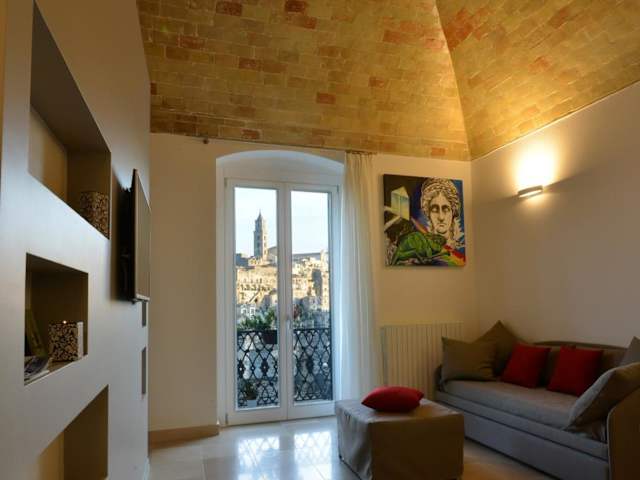 Das L'Affaccio Dell'Abate ist eine klimatisierte Unterkunft im Viertel Sassi di Matera, nur wenige Gehminuten von der Kathedrale von Matera entfernt. Die voll ausgestattete Küche mit Kaffeemaschine bietet Ihnen die Möglichkeit, Ihre eigenen Mahlzeiten zuzubereiten. Die Unterkunft verfügt über zwei Badezimmer mit kostenfreien Pflegeprodukten und Dusche sowie zwei Balkone. Kostenloses WLAN steht Ihnen in allen Bereichen des L'Affaccio Dell'Abate zur Verfügung. Die zentrale Lage ermöglicht es Ihnen, das Museum MUSMA und die Burg Tramontano in kurzer Zeit zu erreichen. Der Flughafen Bari ist nur 53 km entfernt.