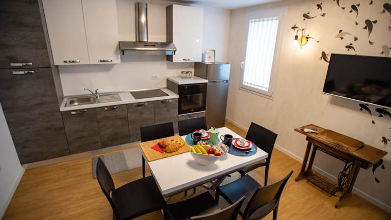 Das Apartment verfügt über eine voll ausgestattete Küche, so dass die Gäste ihre eigenen Mahlzeiten zubereiten können. In der Umgebung gibt es jedoch auch verschiedene Restaurants und Cafés, in denen Sie lokale Spezialitäten genießen können.