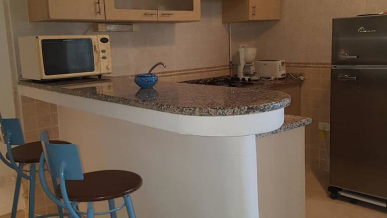 Die Unterkunft verfügt über eine Ferienwohnung mit Klimaanlage, die ein Schlafzimmer, ein Wohnzimmer und eine voll ausgestattete Küchenzeile mit Kühlschrank und Kaffeemaschine umfasst. Ein Badezimmer mit Dusche und Haartrockner ist ebenfalls vorhanden. Handtücher und Bettwäsche sind in der Unterkunft vorhanden.