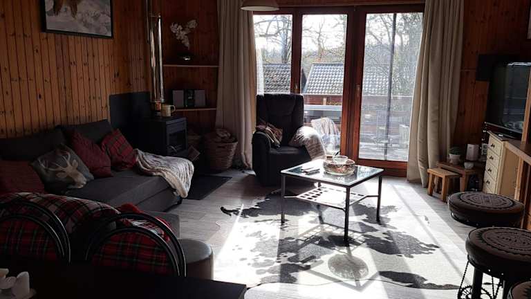 Das Chalet verfügt über zwei Schlafzimmer, ein Wohnzimmer und eine gut ausgestattete Küche mit Kühlschrank und Geschirrspüler. Die Ausstattung umfasst außerdem einen Flachbild-TV und ein Badezimmer mit Dusche. Gäste haben Zugang zu einer Terrasse mit Gartenblick. Bettwäsche und Handtücher sind nicht im Preis inbegriffen, können jedoch für eine Gebühr bereitgestellt werden.