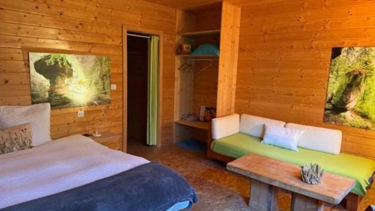 Die beiden Zimmer im l'Atelier de Gisèle bieten eine gemütliche Atmosphäre im Chalet-Stil. Sie sind liebevoll eingerichtet und bieten einen herrlichen Blick auf die umliegende Landschaft. Zur Ausstattung gehören auch eine kleine Auswahl an Büchern und ein eigenes Badezimmer mit Dusche.