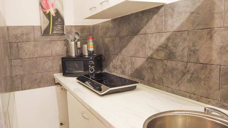 Die Ferienwohnung verfügt über ein Schlafzimmer und ein Badezimmer mit Dusche. Zur Ausstattung gehören ein Flachbild-TV mit Satellitenkanälen sowie eine gut ausgestattete Küche, die einen Kühlschrank und eine Mikrowelle umfasst.
