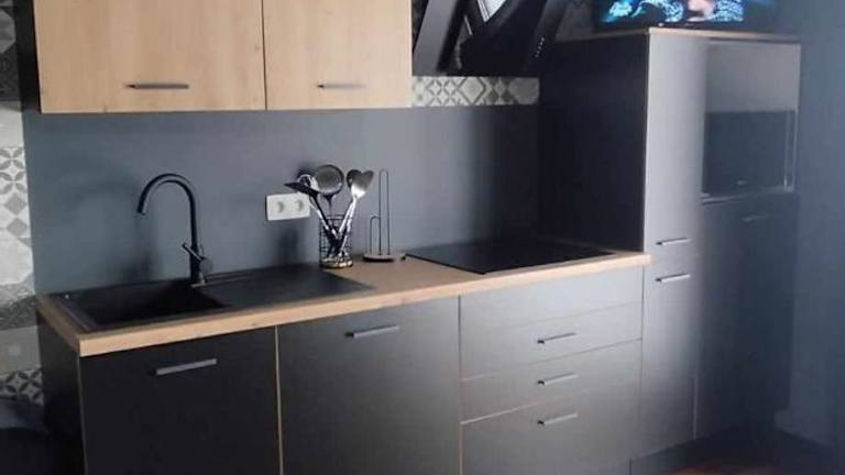 Die Unterkunft bietet eine gut ausgestattete Küche mit einem Kühlschrank, Geschirrspüler, Mikrowelle, Kaffeemaschine und Wasserkocher.