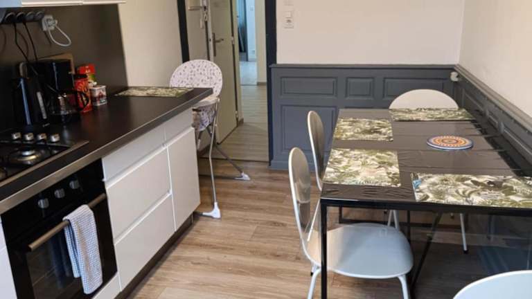 Die Ferienwohnung umfasst ein Schlafzimmer, ein Wohnzimmer sowie eine voll ausgestattete Küche, die mit einem Kühlschrank und einer Kaffeemaschine ausgestattet ist. Zudem gibt es ein Badezimmer mit einer Dusche und einem Haartrockner. Handtücher und Bettwäsche werden bereitgestellt.