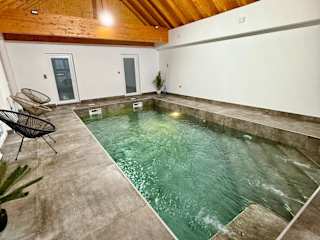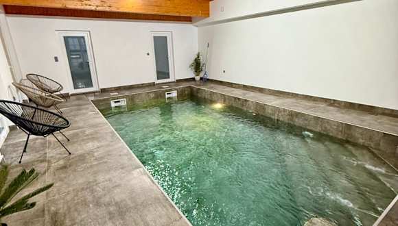 Die Unterkunft bietet einen Innenpool, der ganzjährig genutzt werden kann. Zudem stehen Sonnenstühle, Liegen und Sonnenschirme für die Gäste zur Verfügung.