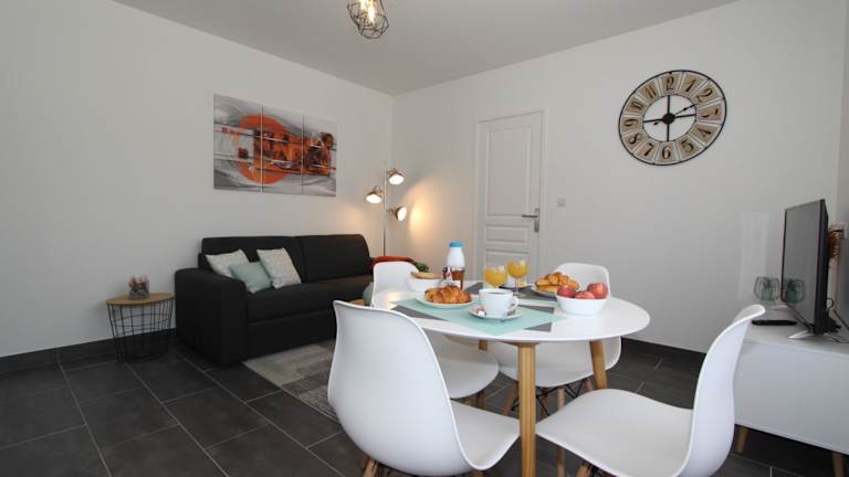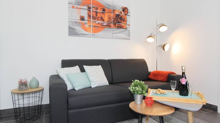 Das Apartment im L'Eden by EasyEscale verfügt über ein geräumiges Schlafzimmer, ein gemütliches Wohnzimmer und eine voll ausgestattete Küche. Hier finden Sie alles, was Sie für einen angenehmen Aufenthalt benötigen. Handtücher und Bettwäsche werden gestellt, sodass Sie sich um nichts kümmern müssen.