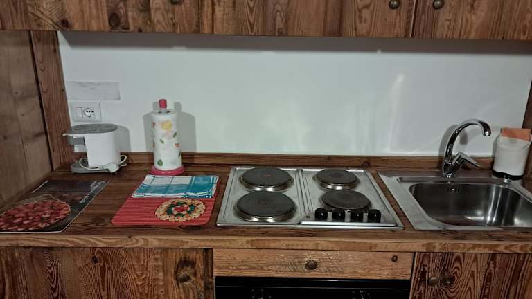 Die Ferienwohnung umfasst ein Schlafzimmer, ein Badezimmer, eine voll ausgestattete Küche und eine Terrasse mit Blick auf die Berge sowie einen Flachbild-TV.
