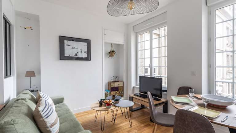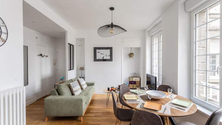 Die Unterkunft L'ILE AUX MOUETTES - en plein Intra-Muros befindet sich im Zentrum von Saint-Malo, nur 300 Meter vom Strand von Bon Secours entfernt. In der näheren Umgebung liegen die Strände von Mole, Eventail und die Sehenswürdigkeit Grand Bé.