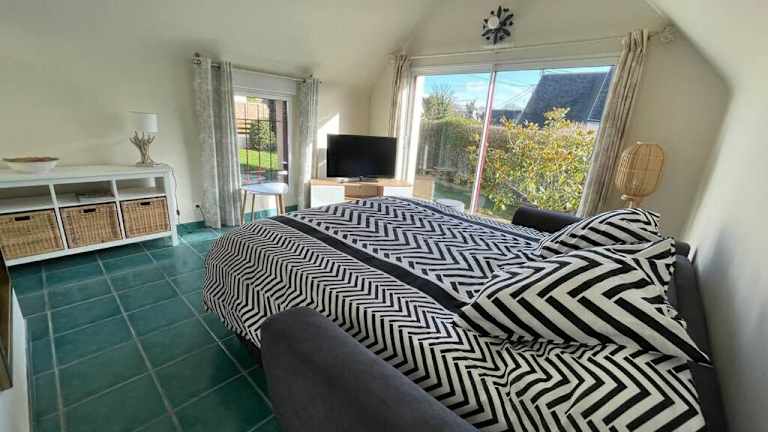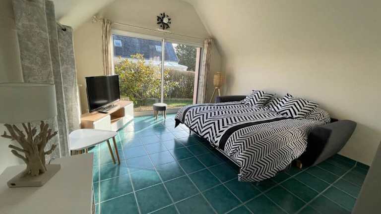 Verbringen Sie einen entspannten Strandurlaub im L'olivier du Cabellou in Concarneau. Das Ferienhaus liegt nur 900 m vom Plage Belle Etoile entfernt und bietet Unterkünfte am Strand mit einem Garten und kostenfreiem WLAN. Genießen Sie die malerische Umgebung und erkunden Sie die vielfältigen Aktivitäten wie Wandern und Angeln. Das Ferienhaus selbst ist komfortabel eingerichtet und verfügt über eine Terrasse, von der aus Sie einen Blick auf den Garten genießen können.