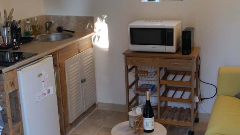 Die Zimmer sind klimatisiert und verfügen über eine voll ausgestattete Küchenzeile mit einem Essbereich, einem TV sowie einem eigenen Badezimmer mit Dusche, Haartrockner und Bademänteln. Zur Ausstattung gehören auch ein Kühlschrank, eine Mikrowelle, eine Herdplatte, eine Kaffeemaschine und ein Wasserkocher.