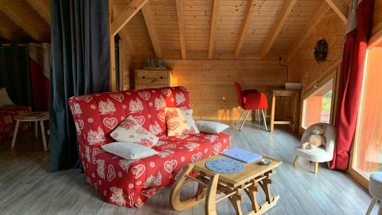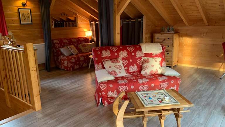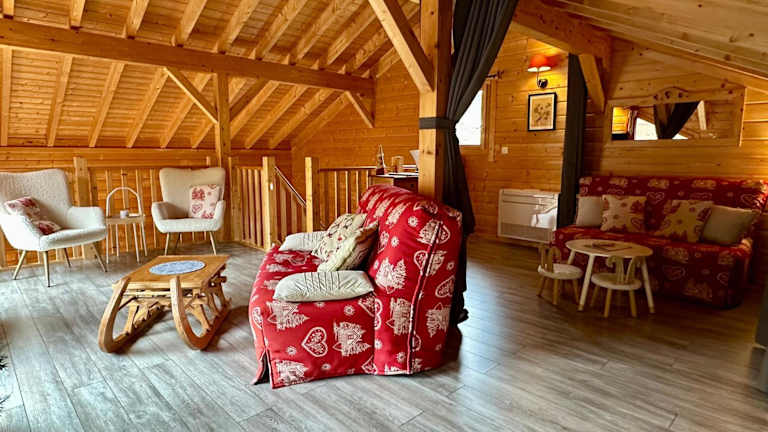 L'Orpin Givré - Chalet Limoselle mit großer Mezzanine präsentiert sich als eine komfortable Unterkunft mit einem Garten und einer Terrasse. Das Chalet bietet eine atemberaubende Aussicht auf die Berge und stellt sich als ideale Wahl für Naturliebhaber dar, die Entspannung sowie aktive Erholung suchen.