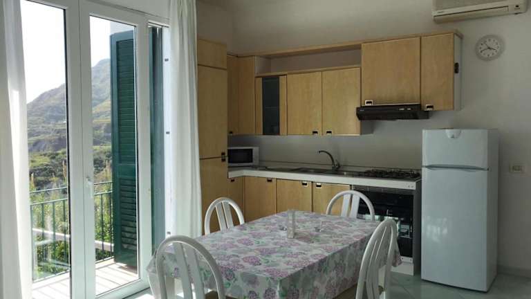Das klimatisierte Apartment in der L' Ulivo Villa Nunzia bietet Platz für bis zu vier Personen. Es verfügt über zwei separate Schlafzimmer, die für eine angenehme Nachtruhe sorgen. Das geräumige Wohnzimmer bietet ausreichend Platz zum Entspannen und ist mit einem Flachbild-TV ausgestattet. Die voll ausgestattete Küche ermöglicht es Ihnen, Ihre eigenen Mahlzeiten zuzubereiten. Das Badezimmer ist modern und verfügt über alle notwendigen Annehmlichkeiten. Von Ihrem eigenen Balkon aus können Sie den Ausblick auf das Meer genießen.