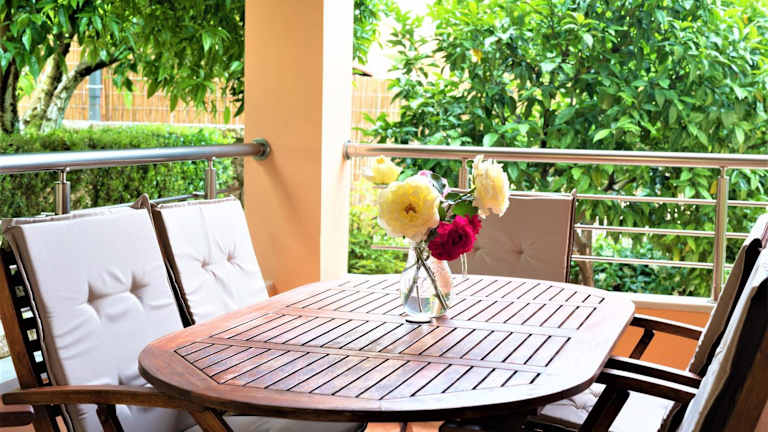 Die Villa bietet 3 Schlafzimmer und 2 Badezimmer. Zur Ausstattung gehören Bettwäsche, Handtücher, ein Flachbild-TV, ein Essbereich, eine voll ausgestattete Küche und eine Terrasse mit Blick auf die Berge.