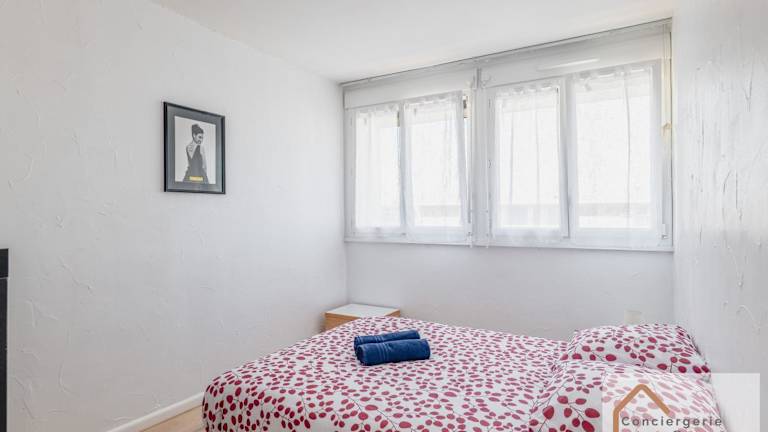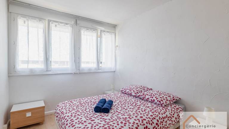 Die Ferienwohnung verfügt über zwei Schlafzimmer, ein Wohnzimmer, ein Badezimmer mit Dusche und bietet einen Balkon mit Stadtblick. Zur Ausstattung gehören ein Flachbild-TV und eine gut ausgestattete Küche mit Kühlschrank und Ofen. Handtücher und Bettwäsche werden bereitgestellt. Die Zimmer sind schallisoliert.