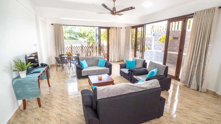 Im La Belle Residence Self Catering Accommodation in Beau Vallon erwartet Sie eine komfortable Unterkunft in der Nähe der Strände Beau Vallon und Anse Marie Laure. Genießen Sie den Luxus von kostenfreiem WLAN und kostenfreien Privatparkplätzen. Das Ferienhaus bietet eine Terrasse mit Meerblick, einen gemütlichen Sitzbereich und einen Flachbild-Kabel-TV. Die voll ausgestattete Küche verfügt über einen Kühlschrank, einen Backofen, eine Mikrowelle, ein Kochfeld, einen Toaster, eine Kaffeemaschine und einen Wasserkocher. Das eigene Bad ist mit einem Bidet und einem Haartrockner ausgestattet. Sie haben auch die Möglichkeit, ein Auto zu mieten, um die Umgebung zu erkunden. Der Strand Bel Ombre ist nur 1,6 km entfernt und der Uhrturm Victoria Clock Tower erreichen Sie nach 4,7 km. Der internationale Flughafen Seychellen ist nur 14 km vom La Belle Residence Self Catering Accommodation entfernt.
