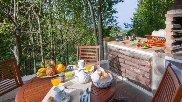 Das Ferienhaus umfasst zwei Schlafzimmer und ein Badezimmer. Zur Ausstattung gehören Bettwäsche, Handtücher, ein TV mit Satellitenkanälen sowie eine voll ausgestattete Küche. Die Terrasse bietet einen Ausblick auf die umliegenden Berge.