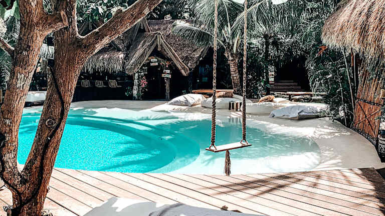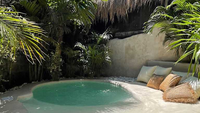 Das La Cabane ist ein idyllisches Hotel, das von tropischer Vegetation umgeben ist und mit seinem Außenpool und den charmanten Holzbungalows für einen entspannten Aufenthalt sorgt. Der nahegelegene Balangan Beach ist in nur 5 Minuten zu Fuß erreichbar und lädt zum Sonnenbaden und Entspannen ein. Die Unterkunft bietet kostenfreies WLAN und jede Unterkunft verfügt über eine private Terrasse mit Blick auf den Garten. In der Umgebung gibt es weitere wunderschöne Strände wie den Biu-Biu Beach und den berühmten Uluwatu-Tempel ist eine kurze Fahrt entfernt. Der internationale Flughafen Denpasar ist ebenfalls gut erreichbar. Die geräumigen Bungalows sind mit allen Annehmlichkeiten wie Moskitonetzen, Safes und gemütlichen Sitzecken ausgestattet. Das eigene Badezimmer bietet eine Dusche und kostenlose Pflegeprodukte. Für zusätzlichen Komfort können Flughafentransfers gegen Gebühr arrangiert werden. Das hauseigene Restaurant verwöhnt Sie mit köstlichen Speisen und das Frühstück wird jeden Morgen auf Ihr Zimmer gebracht.