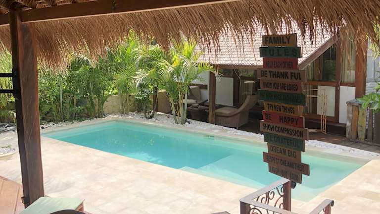 Das Hotel bietet einen Außenpool, in dem Sie sich erfrischen und entspannen können. Genießen Sie die tropische Umgebung und entspannen Sie am Pool. Das Hotel bietet auch kostenfreie Parkplätze für Ihren Komfort. Erkunden Sie die Umgebung und besuchen Sie die nahegelegenen Strände oder unternehmen Sie einen Ausflug zum Uluwatu-Tempel. Das freundliche Personal des Hotels hilft Ihnen gerne bei der Organisation von Aktivitäten und steht Ihnen jederzeit zur Verfügung, um sicherzustellen, dass Sie einen unvergesslichen Aufenthalt haben.