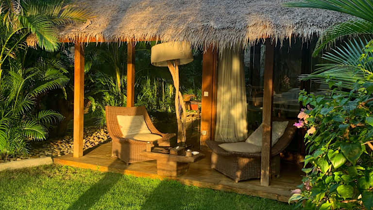 Die Bungalows im La Cabane sind geräumig und bieten eine komfortable Unterkunft mit traditionellem Flair. Jeder Bungalow verfügt über eine private Terrasse mit Blick auf den Garten, auf der Sie entspannen und die tropische Umgebung genießen können. Die Zimmer sind mit Moskitonetzen, Safes und gemütlichen Sitzecken ausgestattet, um Ihnen einen angenehmen Aufenthalt zu ermöglichen. Das eigene Badezimmer bietet eine Dusche, Handtücher und kostenlose Pflegeprodukte für Ihren Komfort. Kostenloses WLAN ist in allen Bereichen der Unterkunft verfügbar, sodass Sie immer mit der Welt in Verbindung bleiben können.