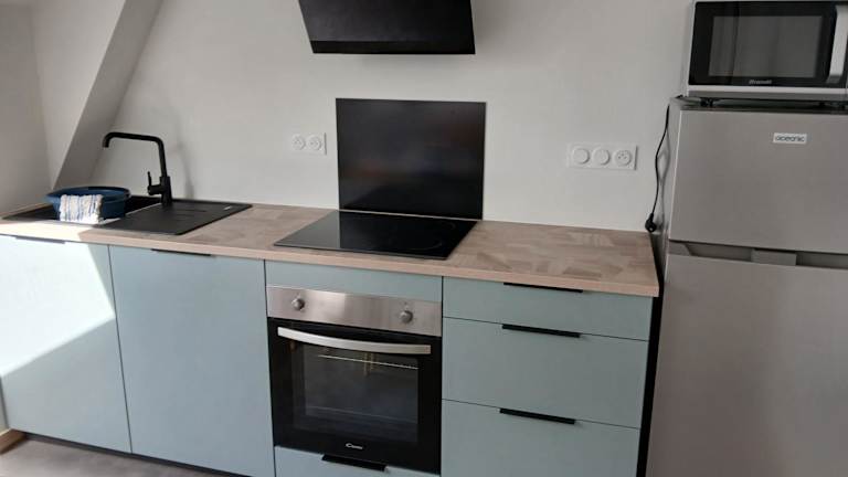Die Unterkunft verfügt über eine Küche, die mit einem Kühlschrank, einem Ofen, einer Mikrowelle und einer Kaffeemaschine ausgestattet ist.