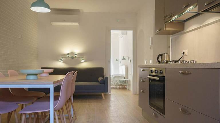 Die Ferienwohnung verfügt über eine Klimaanlage, zwei Schlafzimmer und ein Badezimmer, das mit einem Bidet, einer Dusche sowie kostenlosen Pflegeprodukten ausgestattet ist. Zudem steht den Gästen eine gut ausgestattete Küchenzeile zur Verfügung, die einen Kühlschrank, einen Geschirrspüler und einen Ofen beinhaltet. Ein Haartrockner ist ebenfalls vorhanden.