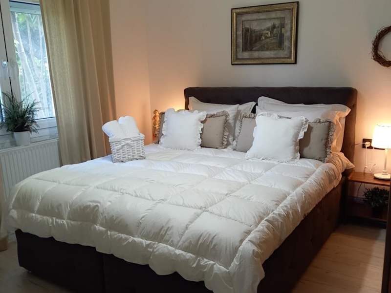Das Ferienhaus besteht aus 2 Schlafzimmern, einem Wohnzimmer und einer voll ausgestatteten Küche, die mit einem Kühlschrank und einer Kaffeemaschine ausgestattet ist. Zudem gibt es ein Badezimmer mit einer Dusche und einen Haartrockner. Handtücher und Bettwäsche werden bereitgestellt. Die Unterkunft ist zudem klimatisiert.