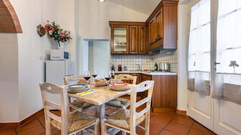 Die Ferienwohnung verfügt über ein Schlafzimmer, ein Wohnzimmer und eine voll ausgestattete Küche mit Kühlschrank und Kaffeemaschine. Das Badezimmer ist mit einem Bidet und einer Dusche ausgestattet. Handtücher und Bettwäsche werden zur Verfügung gestellt.
