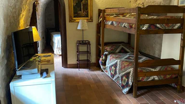 Das Ferienhaus verfügt über 2 Schlafzimmer, ein Wohnzimmer, einen Flachbild-TV und eine gut ausgestattete Küchenzeile mit Kühlschrank und Ofen. Es gibt zudem ein Badezimmer mit Bidet. Handtücher und Bettwäsche werden bereitgestellt. Zudem gibt es einen Balkon mit Stadtblick.