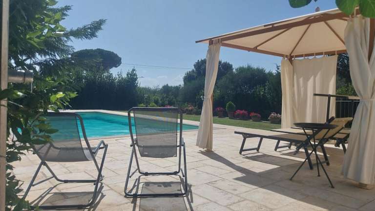Das Ferienhaus verfügt über Klimaanlage und besteht aus zwei Schlafzimmern, einem Wohnzimmer sowie einer voll ausgestatteten Küche mit Kühlschrank und Kaffeemaschine. Zudem sind zwei Badezimmer mit Bidet und Dusche vorhanden. Handtücher und Bettwäsche werden bereitgestellt.