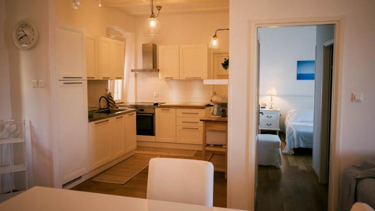 Die Ferienwohnung ist klimatisiert und bietet ein Schlafzimmer sowie ein Badezimmer, das mit einem Bidet, einer Dusche und einem Haartrockner ausgestattet ist. Die Küche verfügt über einen Kühlschrank, einen Geschirrspüler, einen Ofen, eine Kaffeemaschine und einen Wasserkocher.