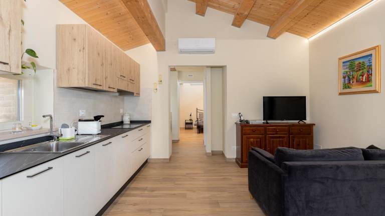 Die Ferienwohnung umfasst 1 Schlafzimmer, ein Wohnzimmer und eine voll ausgestattete Küche mit Kühlschrank und Kaffeemaschine. Zudem sind 1 Badezimmer mit Bidet und Dusche sowie ein Flachbild-TV vorhanden.
