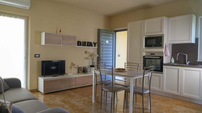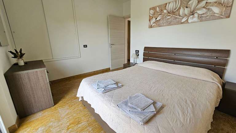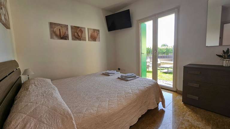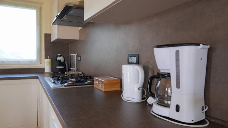 Die Ferienwohnung verfügt über ein Schlafzimmer, ein Wohnzimmer sowie eine voll ausgestattete Küche mit Kühlschrank und Kaffeemaschine. Des Weiteren sind ein Badezimmer mit Bidet und Dusche vorhanden. Handtücher und Bettwäsche werden bereitgestellt.