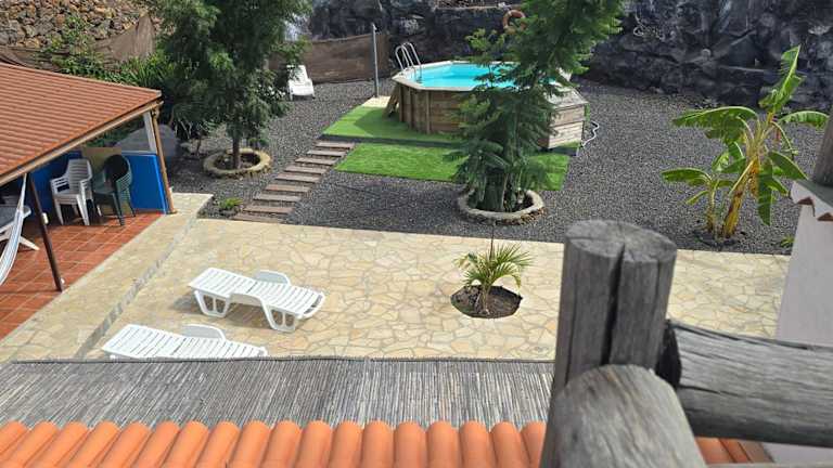 La casita del fin del mundo en La Palma ist ein Ferienhaus mit einem eigenen Pool, einem Garten, einem Grillbereich und einer Terrasse mit Blick auf die Berge.