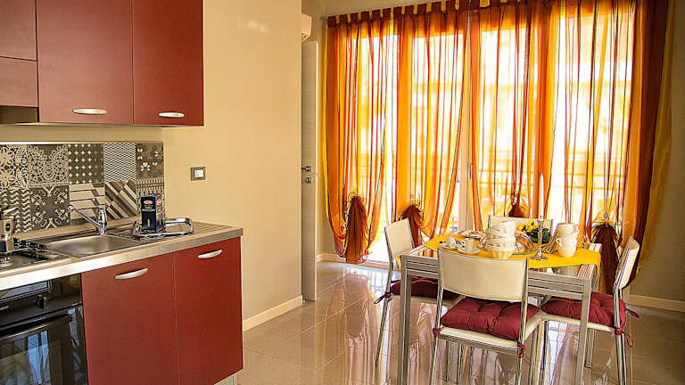Die Apartments im La Conchiglia Case Vacanze sind komfortabel und bieten alles, was Sie für einen angenehmen Aufenthalt benötigen. Jedes Apartment verfügt über einen Balkon oder eine Terrasse, auf der Sie die warme mediterrane Sonne genießen können. Die klimatisierten Zimmer sorgen dafür, dass Sie sich auch an heißen Tagen wohl fühlen. Zur Ausstattung gehören ein LCD-Sat-TV, ein CD- und DVD-Player sowie eine gut ausgerüstete Küche, in der Sie Ihre eigenen Mahlzeiten zubereiten können. Eine Waschmaschine steht Ihnen ebenfalls zur Verfügung, so dass Sie auch während Ihres Aufenthalts Ihre Wäsche waschen können.